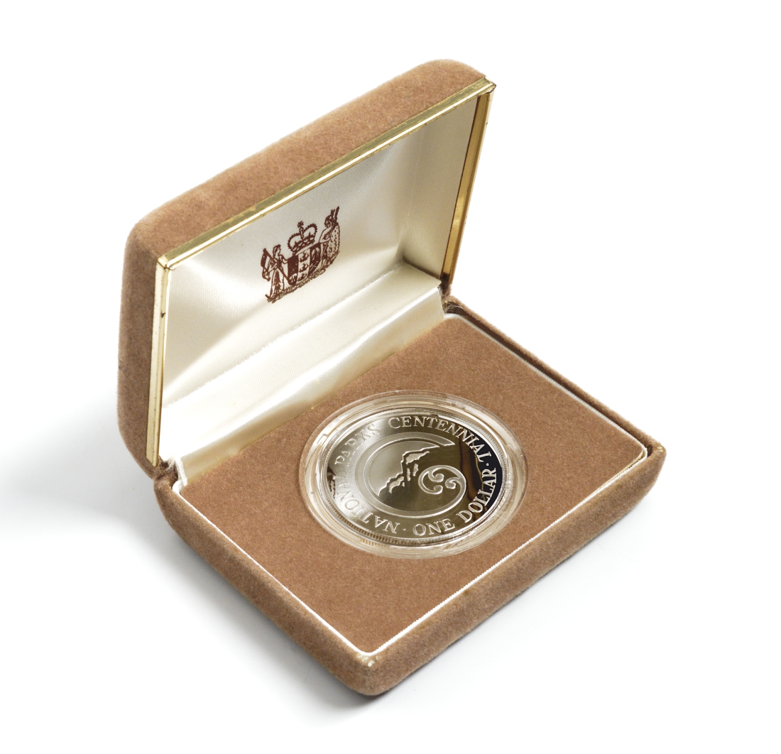 Новая Зеландия 1 доллар 1987 100 лет Национальному парку, в оригинальной коробке KM 65а серебро PROOF 4-3-4-39