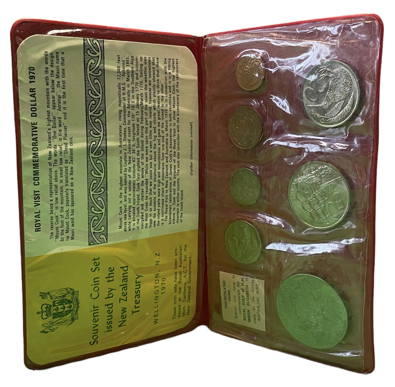 Новая Зеландия официальный набор из 7 монет 1970 включая 1 доллар 1970 гора Кука, Аораки, запайка, сертификат KM MS7 UNC 2-6-3-32