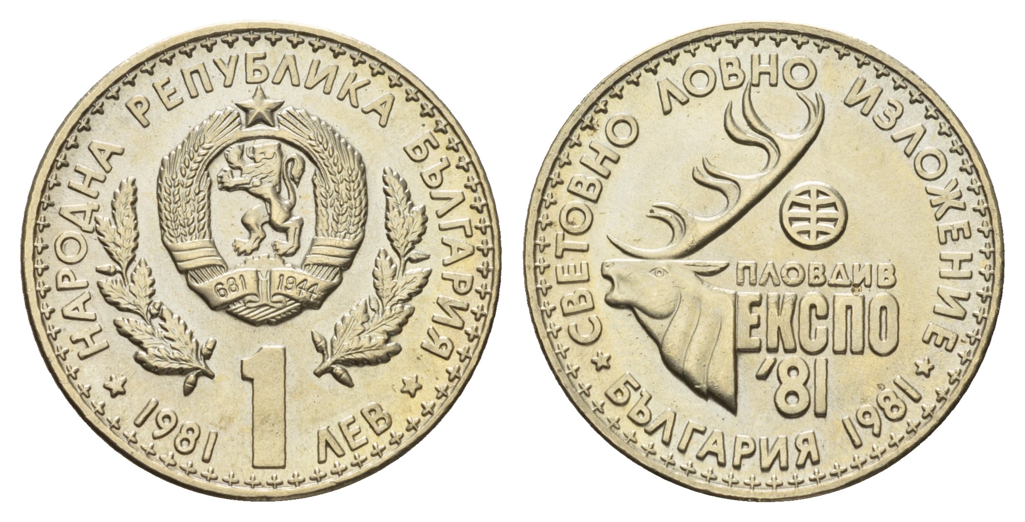 -----Болгария 1 лев 1981 ЭКСПО 1981 года в Пловдиве, охотничья выставка KM 118 медно-никель UNC 4681-325