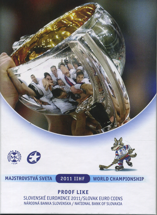 Словакия евронабор из 8 монет + жетон 2011 Чемпионат мира по хоккею с шайбой, в пластике, и оригинальном картонном буклете PROOF 1-4-2-18