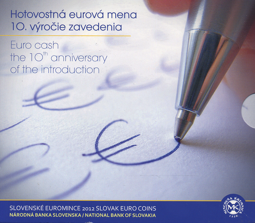 Словакия евронабор из 8 монет + жетон 2012 10 лет введения евро, как валюты, в пластиковой запайке и оригинальном картонном буклете UNC 1-4-2-19