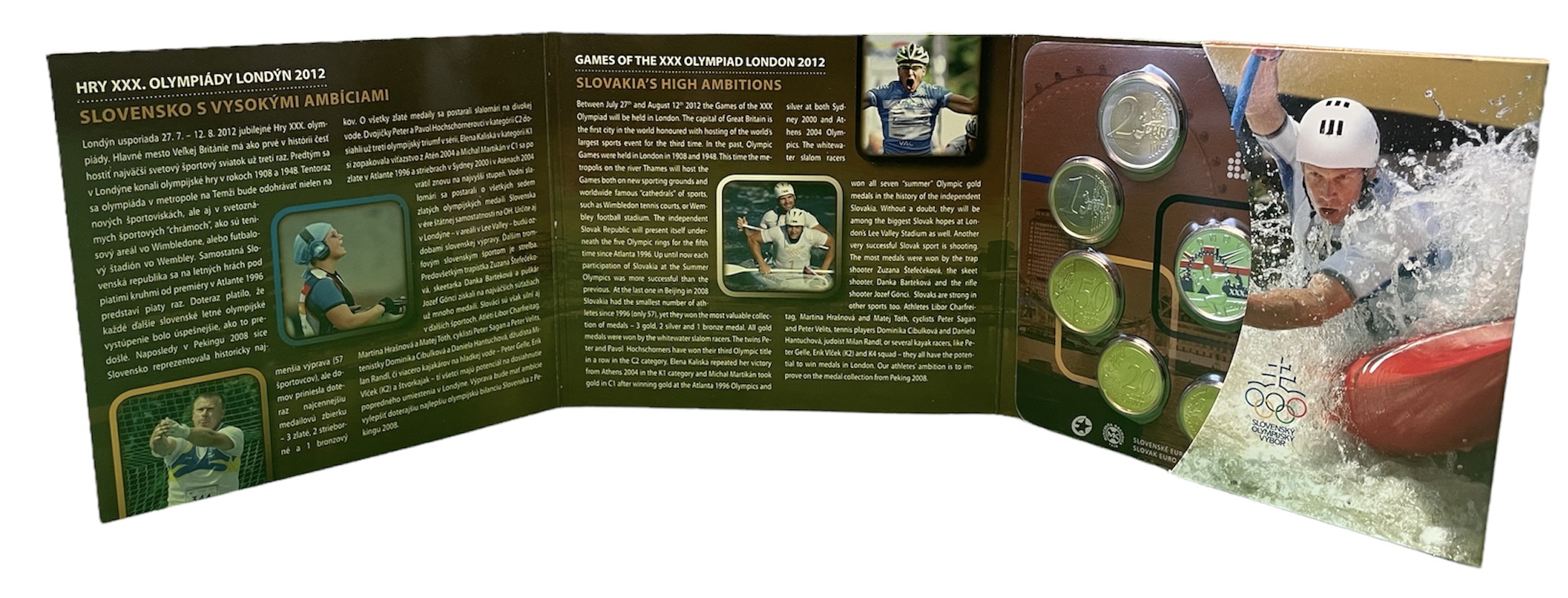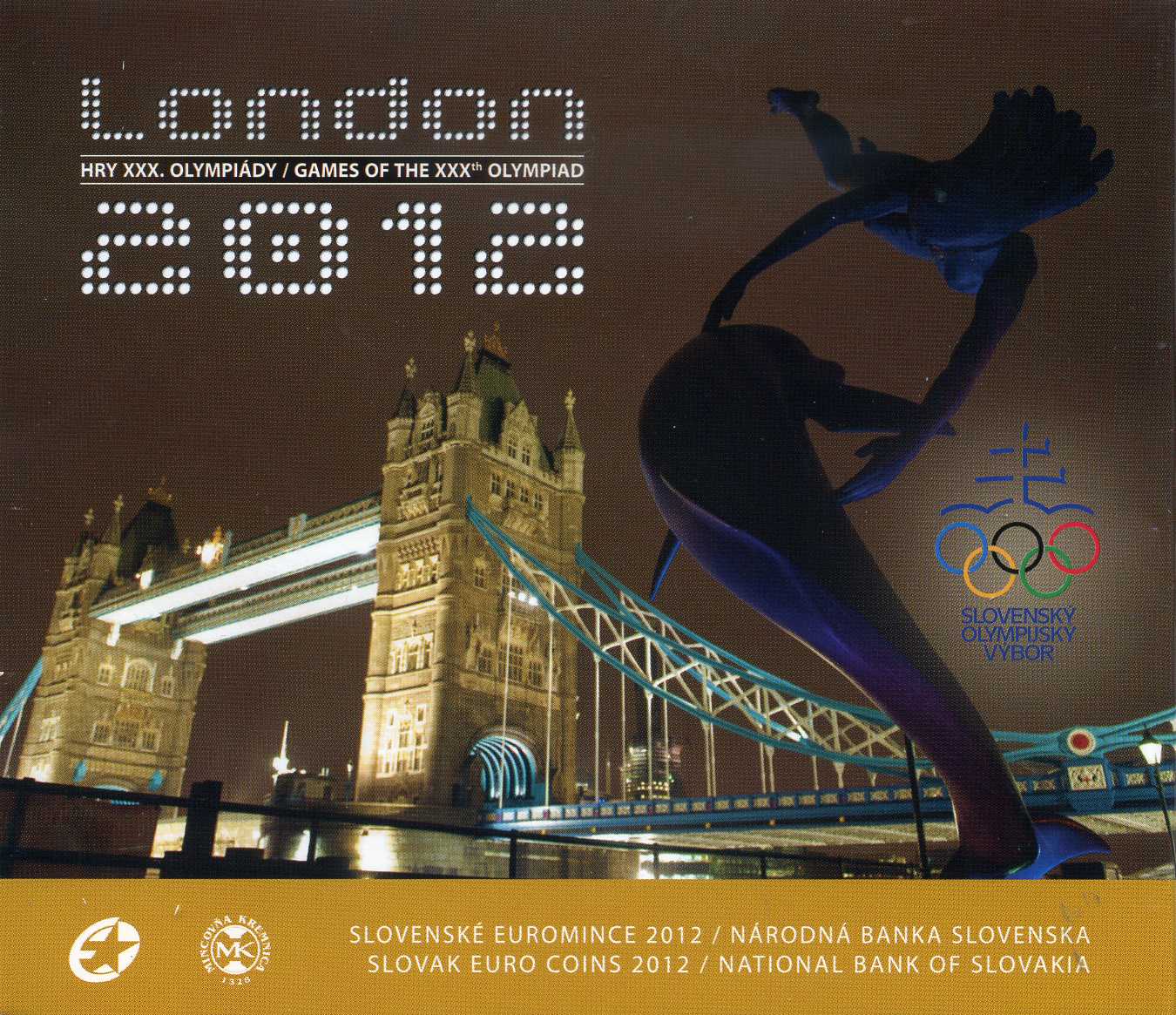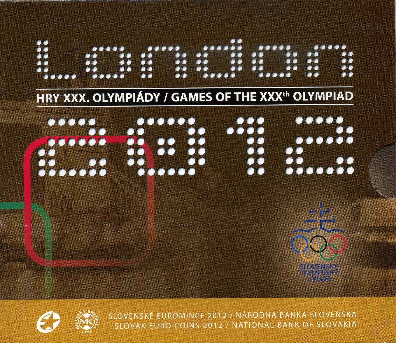 Словакия евронабор из 8 монет плюс жетон 2012 летние олимпийские игры в Лондоне, жетон с цветной эмалью, 1, 2, 5, 10, 20, 50 евроцентов, 1, 2 евро, пластик, запайка, буклет BUNC 3-4-8-19
