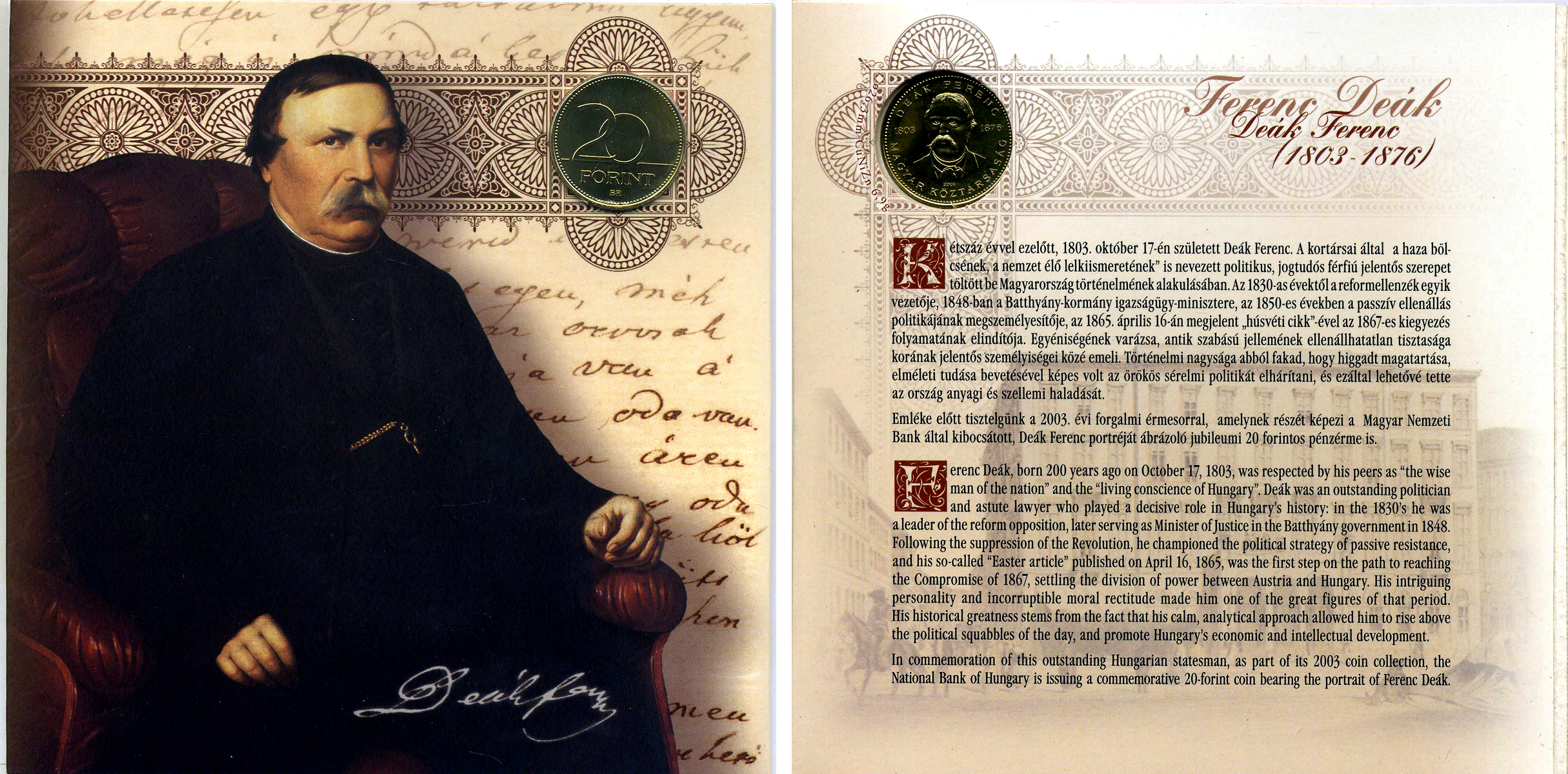 Венгрия государственный набор из 8 монет 2003 200 лет со дня рождения Ференц Деак (1803-1876), официальный выпуск, в оригинальном картонном буклете, тираж 8000 экз. BUNC 3-4-4-05