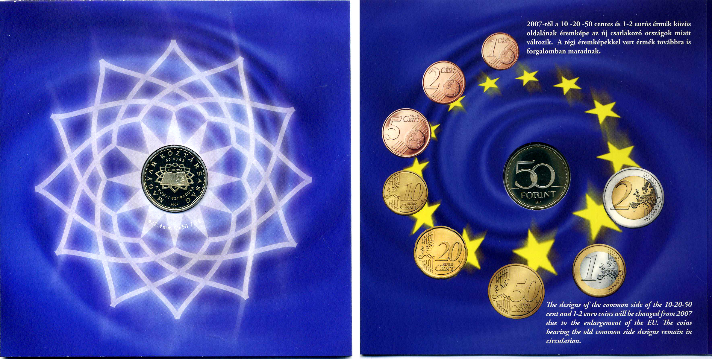 Венгрия государственный набор из 8 монет 2007 50 лет Римскому договору, официальный выпуск, в оригинальном картонном буклете, тираж 5000 экз. PROOF 3-4-4-09