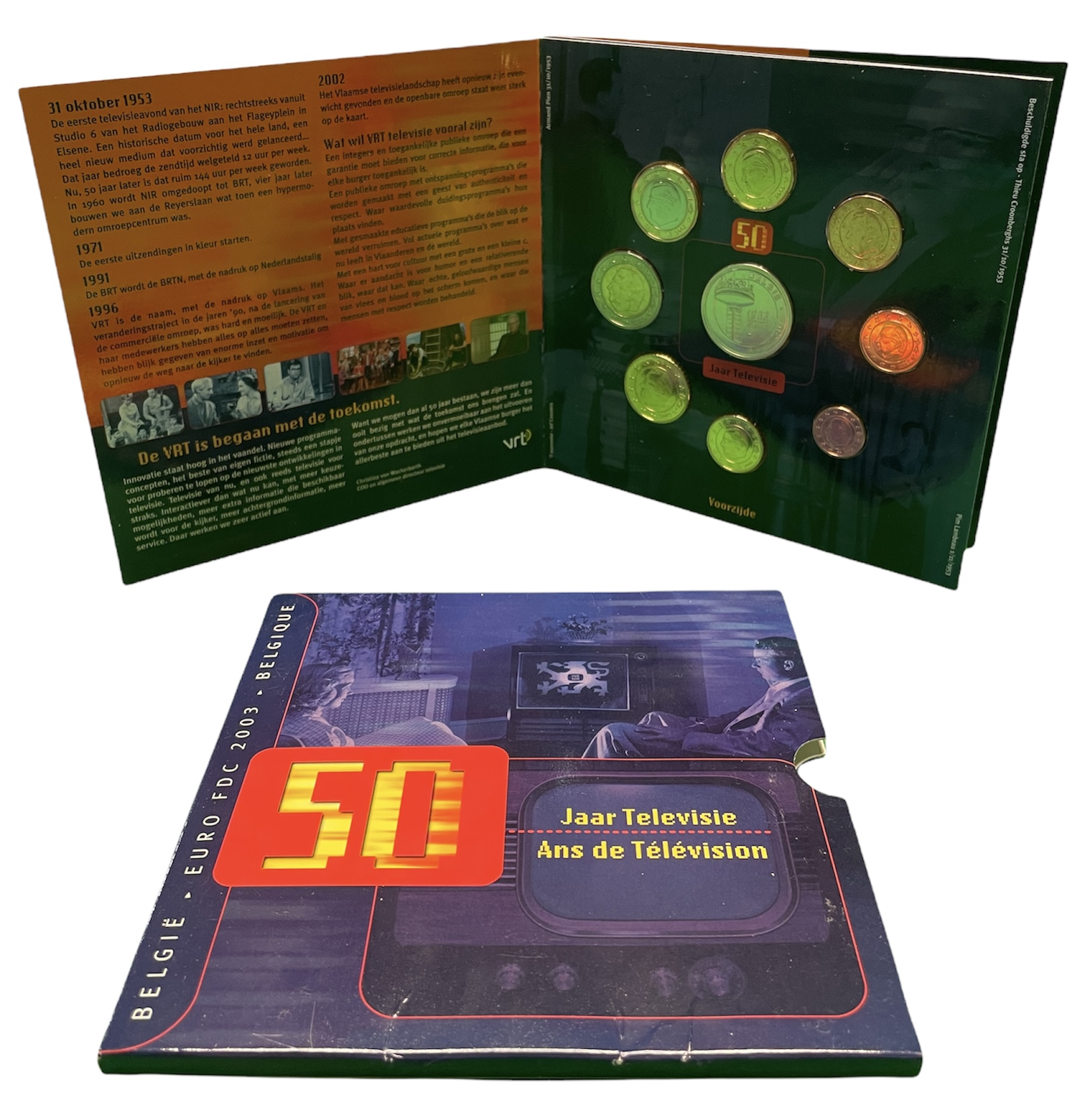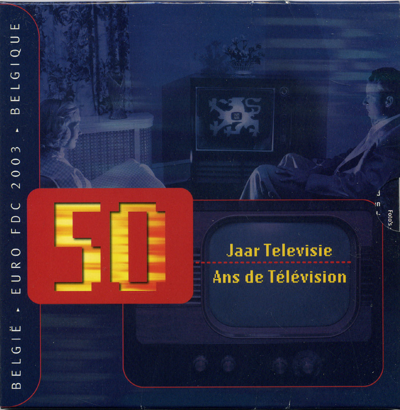 Бельгия евронабор из 8 монет + жетон 2003 50 лет бельгийскому телевидению, в оригинальном картонном буклете UNC биметалл 6-5-3-22