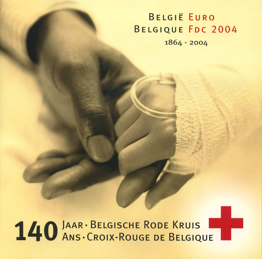 Бельгия евронабор из 8 монет + жетон 2004 140 лет бельгийскому Обществу красного креста, Джон Генри Дунант, в оригинальном буклете UNC 1-5-3-11