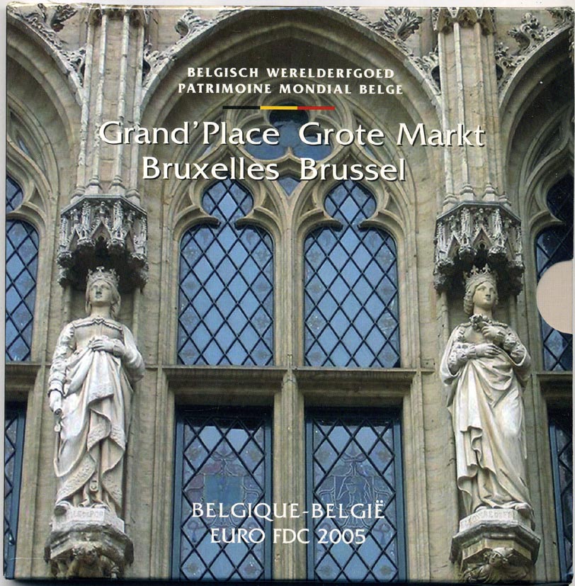 Бельгия евронабор из 8 монет + жетон 2004 Гран-Плас, рыночная площадь в центре Брюсселя, в оригинальном буклете UNC биметалл 6-5-3-25