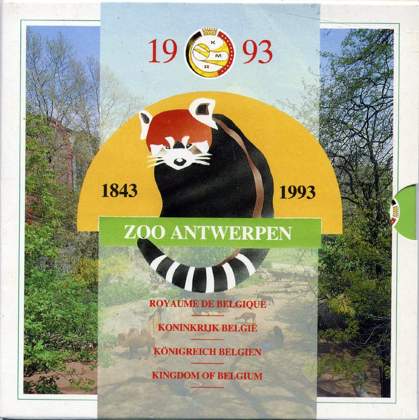 Бельгия набор из 10 монет + жетон монетного двора 1993 Belgie-Belgique, 150 лет Антверпенскому зоопарку (1843-1993), в оригинальном буклете, в запайке KM MS 5 BUNC 6-5-3-45
