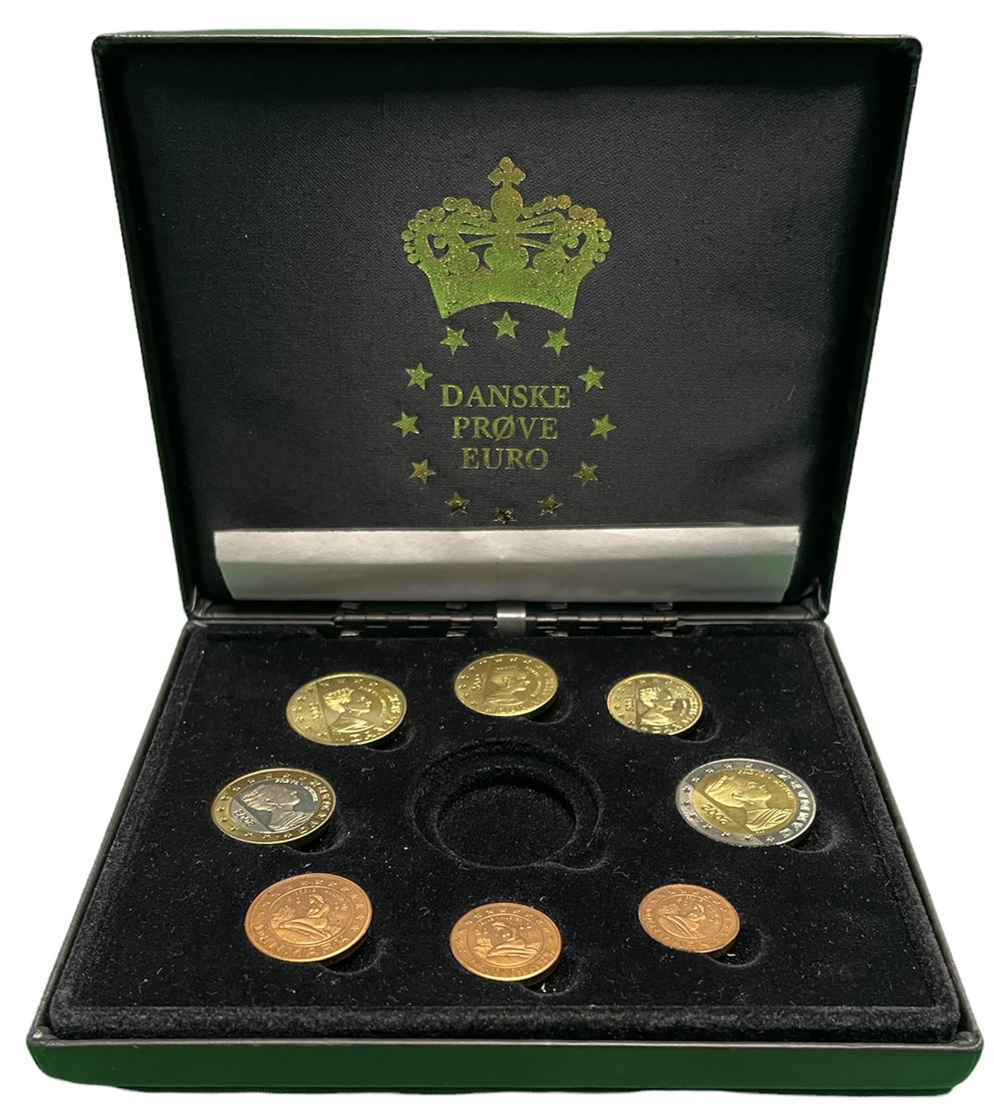 Дания евронабор из 8 монет 2002 в оригинальной коробке, с сертификатом, PROBA, пробники PROOF 5-4-6-12