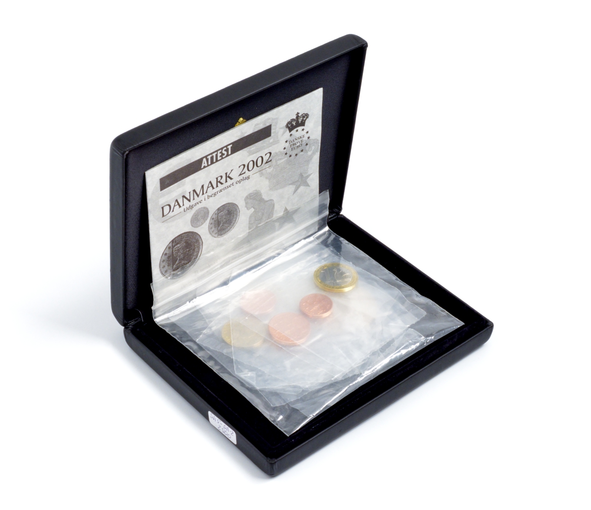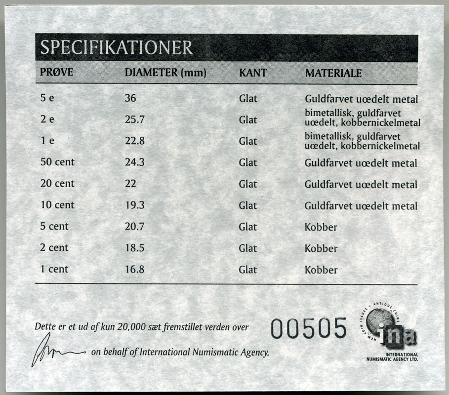 Дания евронабор из 9 монет 2002 proba, пробники, в оригинальной коробке, с сертификатом, включая 5 евро, запайка PROOF 1-4-6-08