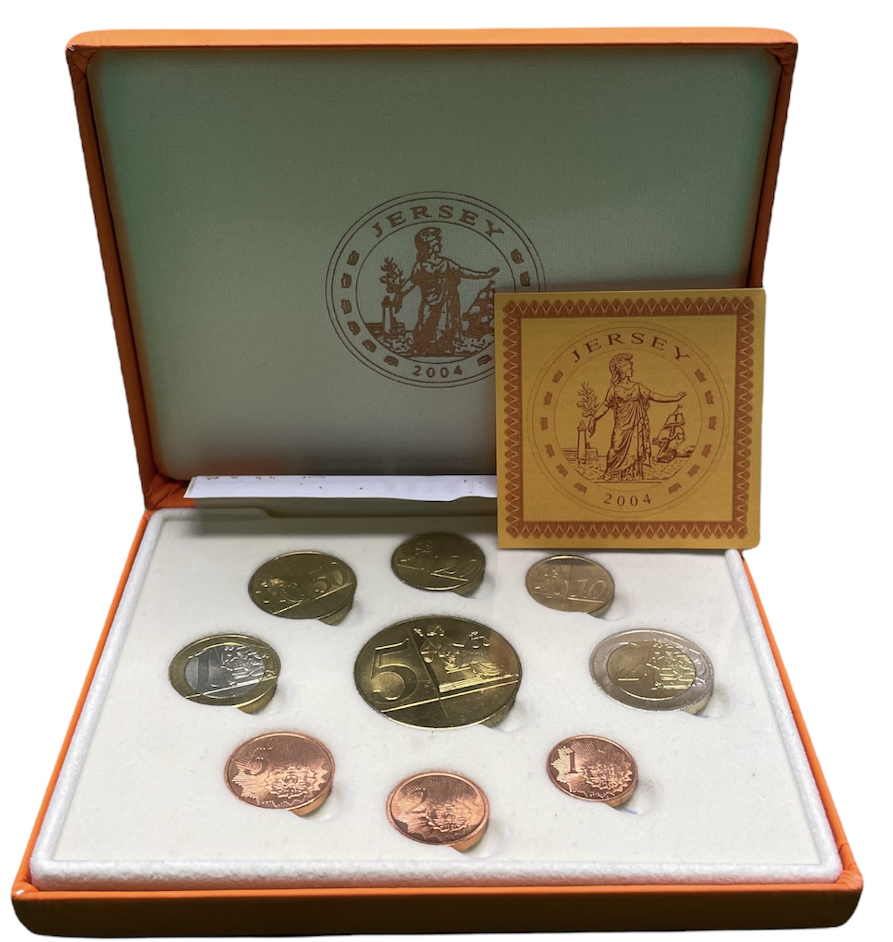 Джерси евронабор из 9 монет (с 5 евро) 2004 пробники, PROBA, в оригинальной коробке, с сертификатом PROOF 6-5-3-47