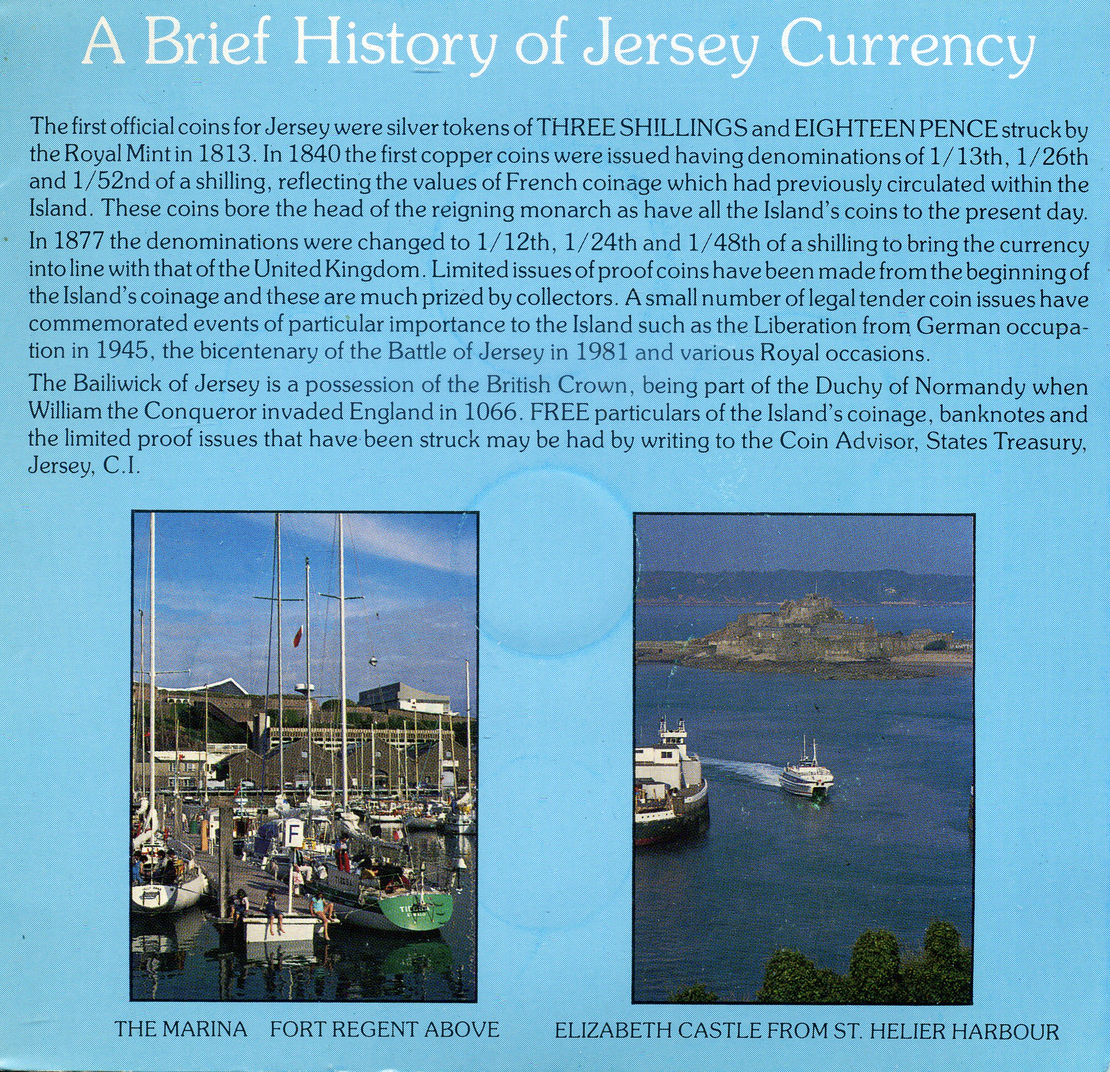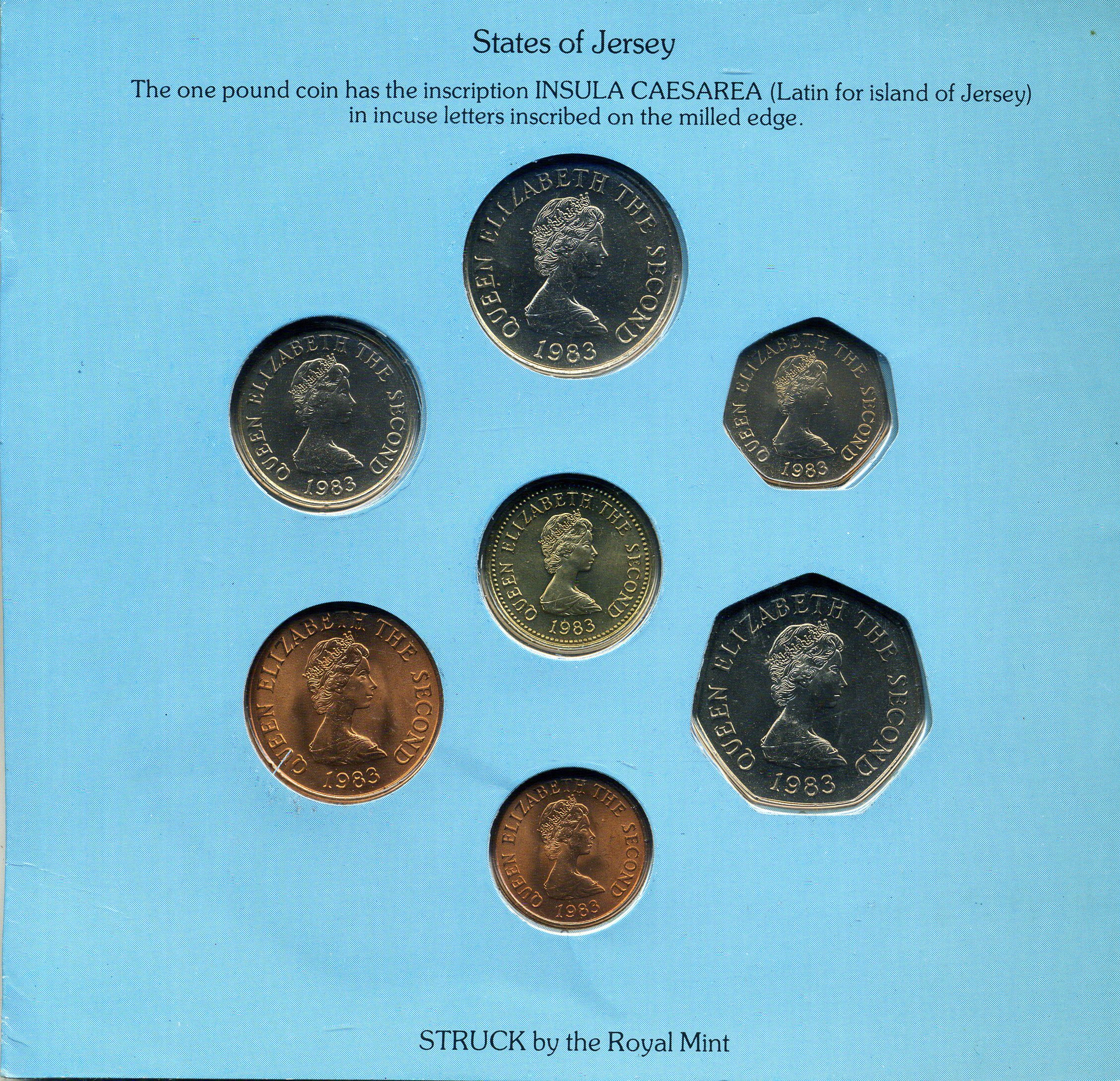Джерси набор из 7 монет (1, 2, 5, 10, 20 и 50 пенсов; 1 фунт) 1983 в оригинальном буклете, тираж 25.000 экземпляров KM 54, 55, 56, 57.1, 58.1 и 59 и 66 BU 7-7-16