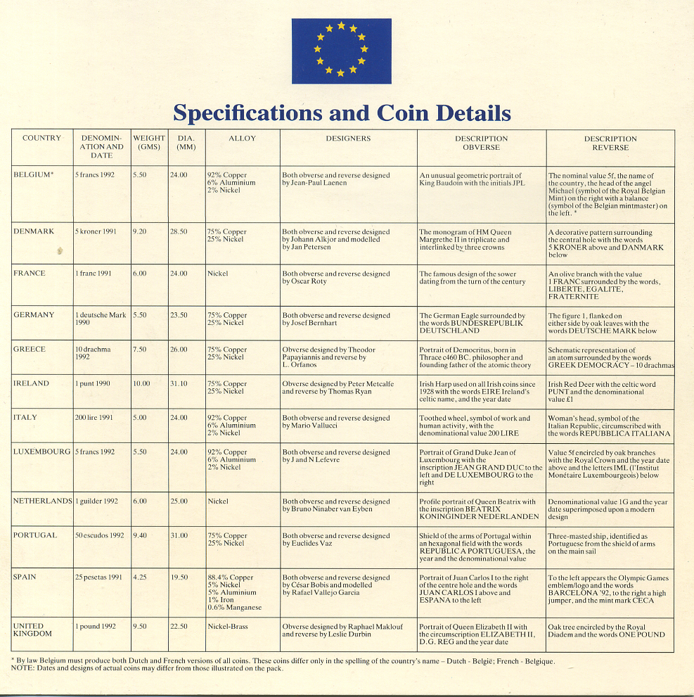 Европа набор из 12 доевровых монет разных стран 1990-1992 в оригинальном буклете UNC 7-4-67