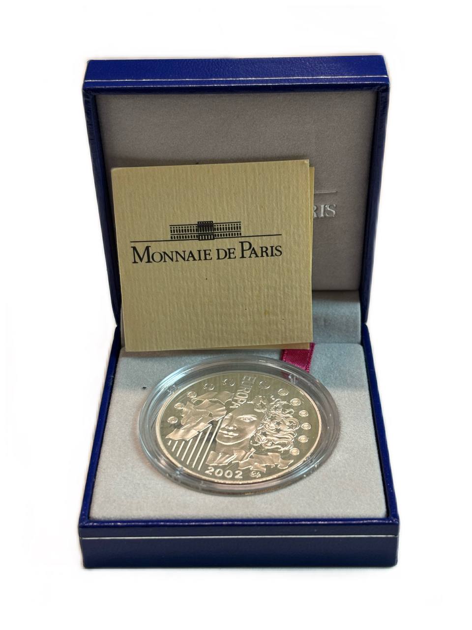 Франция 1 1/2 евро 2002 введение евро, в оригинальной коробке, сертификат KM 1301 серебро PROOF 1-6-4-64