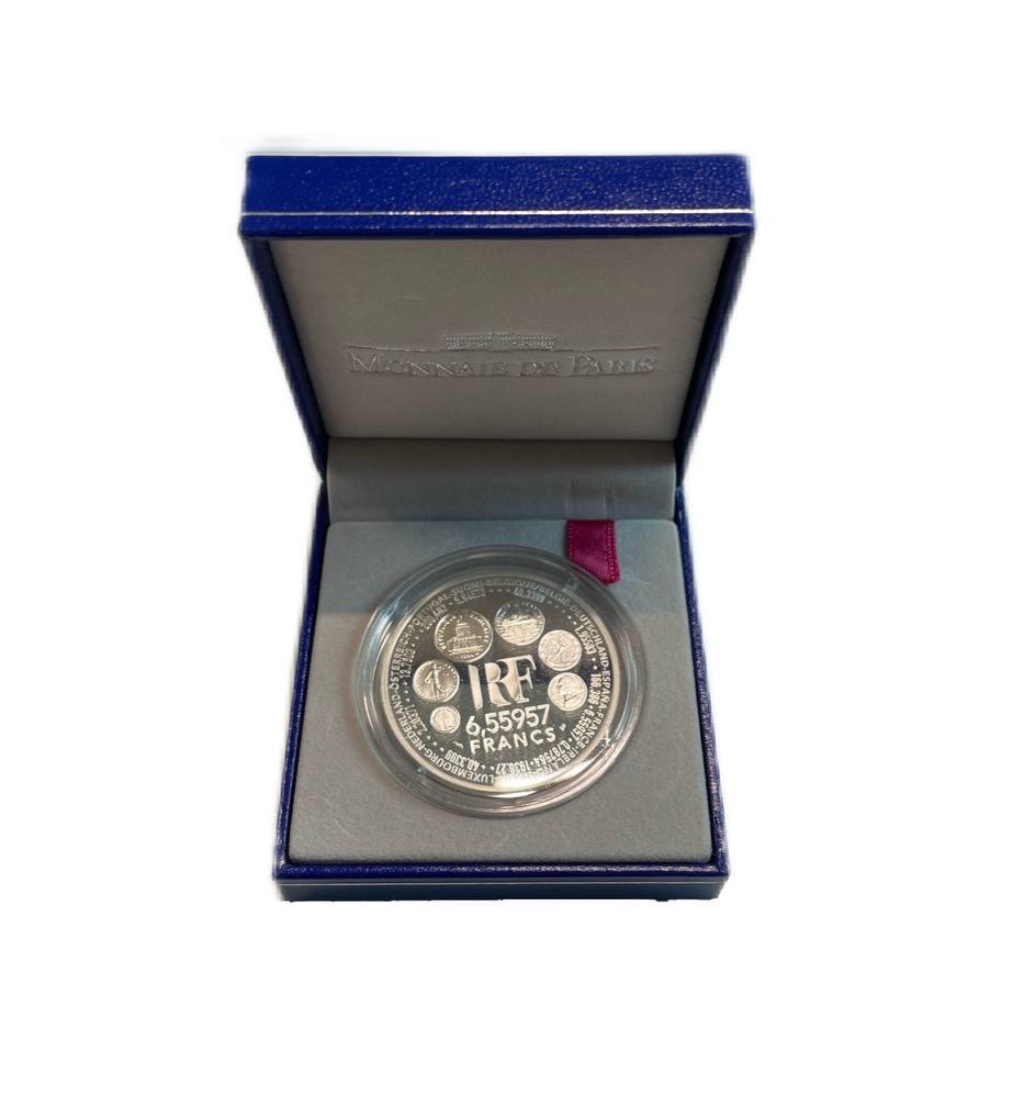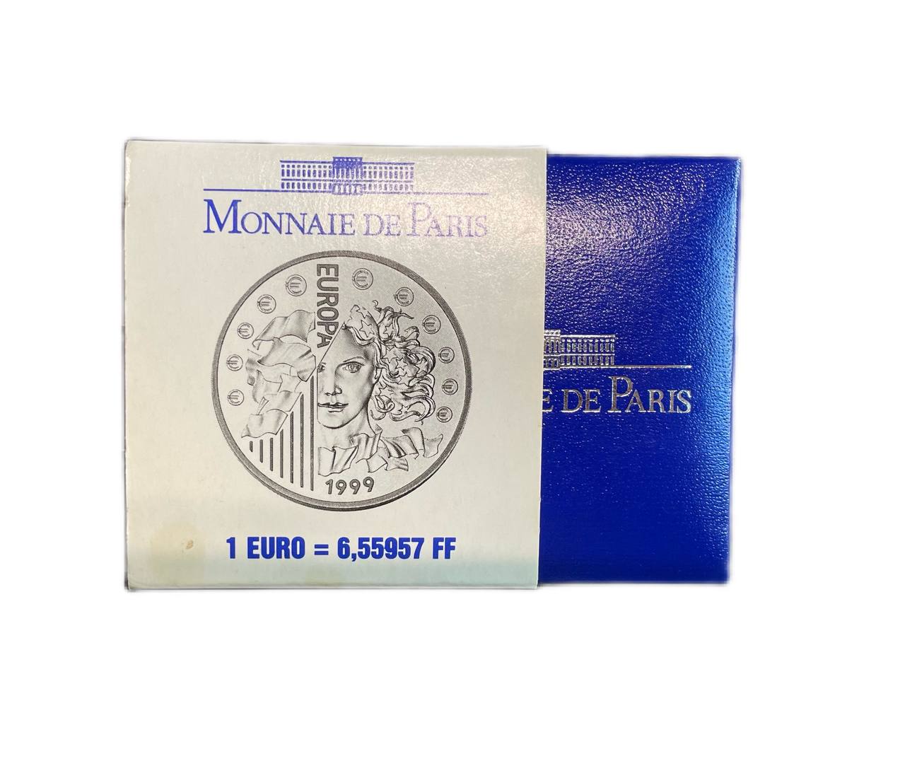 Франция 1 евро = 6,55957 франков 1999 страны Евросоюза, введение евро, курс франка к евро, в оригинальной коробке KM 1255 серебро PROOF 3-4-11-17