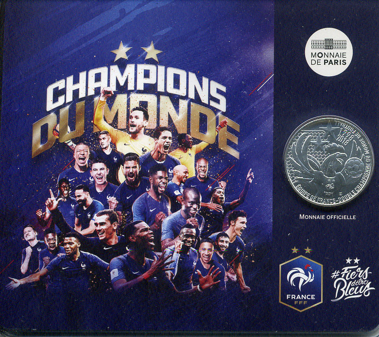 Франция 10 евро 2018 Франция дважды чемпион мира по футболу, оригинальный буклет KM NEW серебро UNC 8-1-01-30