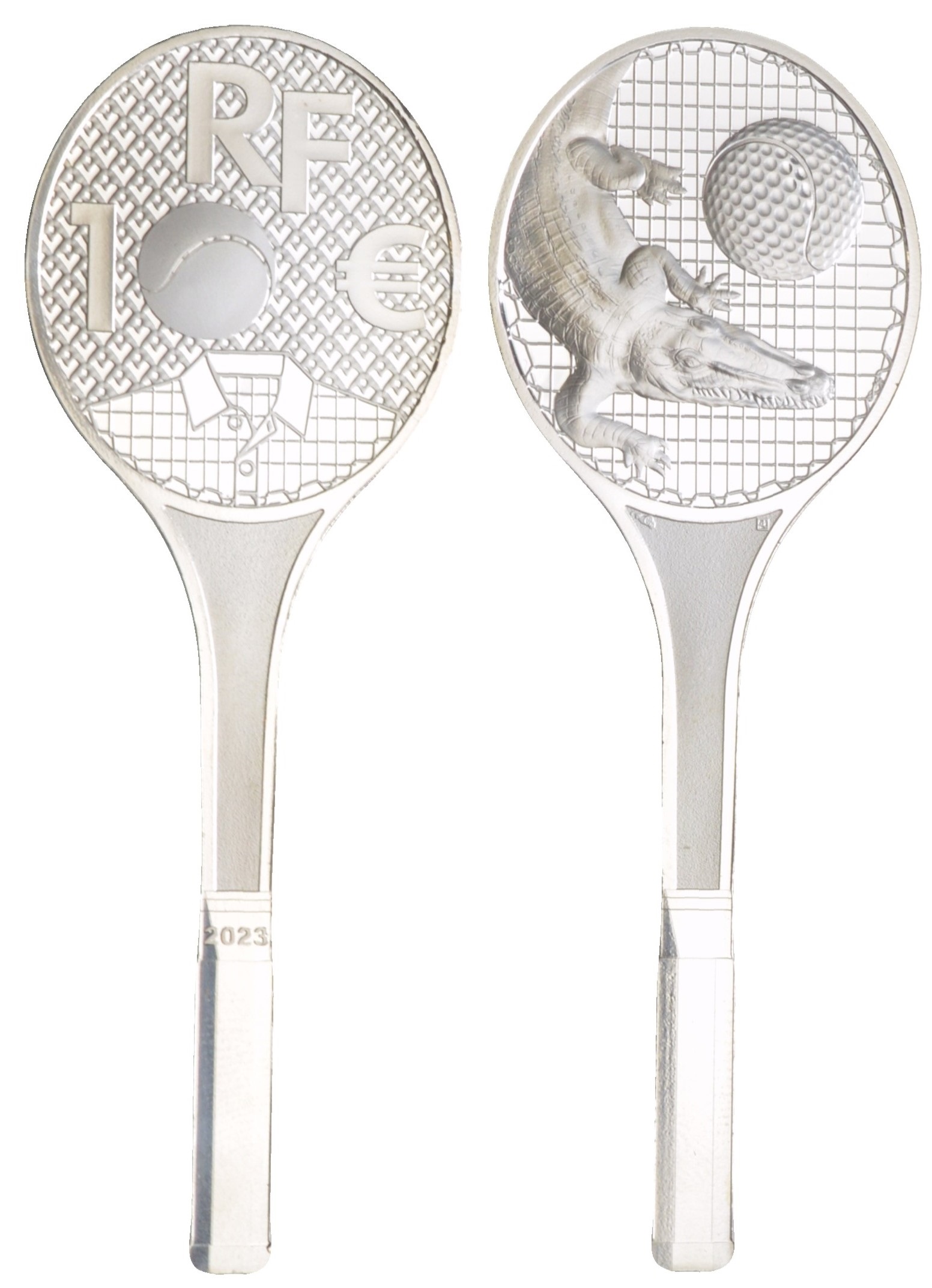 Франция 10 евро 2023 Французское мастерство - Лакост (Lacoste), в форме теннисной ракетки, в оригинальной коробке, с сертификатом, тираж 6.000 экземпляров KM 3246 серебро PROOF 00-00