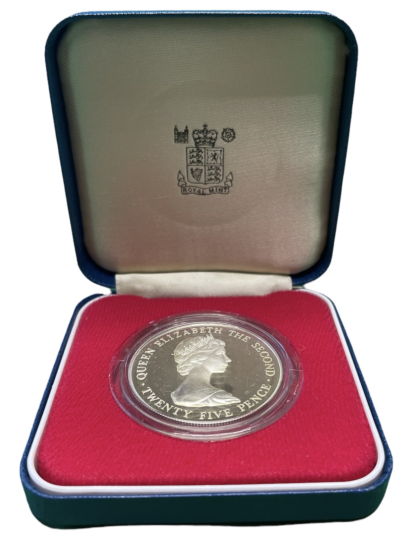 Гернси 25 пенсов 1978 Королевский визит, в оригинальной коробке KM 32a серебро PROOF 3-4-4-17