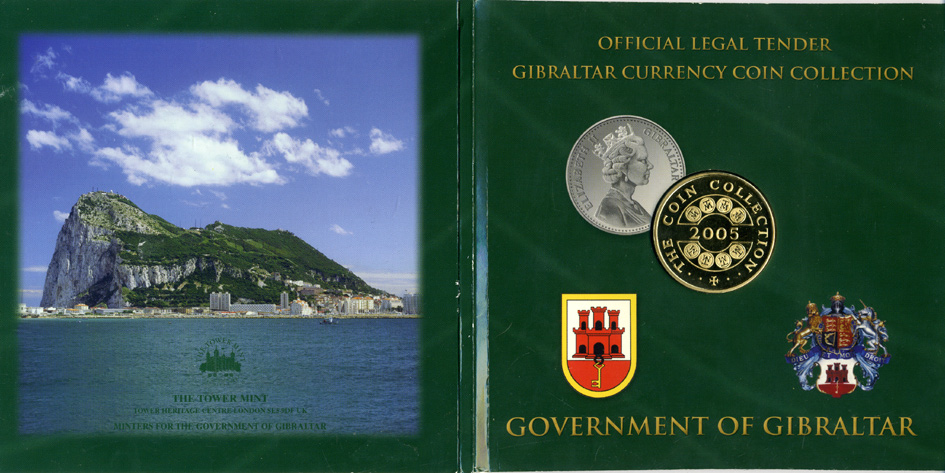 Гибралтар набор из 8 монет плюс жетон 2005 официальный набор, в оригинальном картонном буклете UNC 1-4-2-35