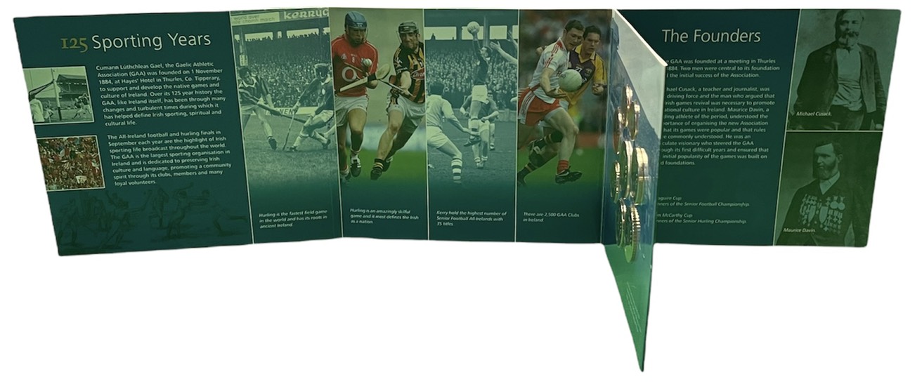 Ирландия евронабор из 8 монет 2009 125 лет Спортивной Ассоциации, запайка, в оригинальном картонном буклете, сертификат BUNC 5-4-4-28