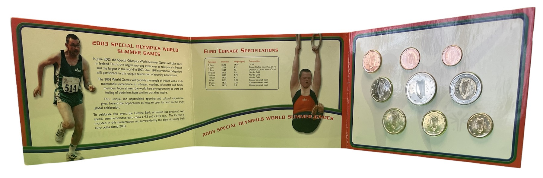 Ирландия официальный набор из 9 монет 2003 включая 5 евро специальные Олимпийские игры в Ирландии 2003, цветная эмаль KM MS12 UNC 1-6-4-75