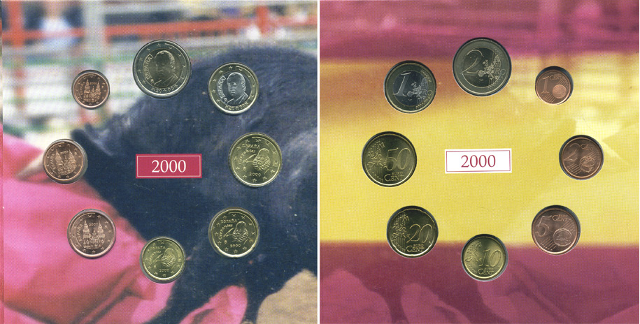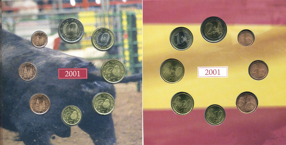 Испания набор из 3 евронаборов по 8 монет 1999-2001 оригинальный официальный набор из трех евронаборов, в картонном буклете UNC 7-6-1-06