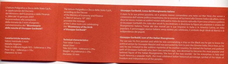 --Италия 5 евро 2007 200 лет со дня рождения Джузеппе Гарибальди KM 292 серебро UNC 6-5-1-32НовинкиАнтичность и раннее СредневековьеМонеты - ГерманияМонеты - ЕвропаМонеты - Австралия и ОкеанияМонеты - АзияМонеты - АмерикаМонеты - АфрикаМонеты - Россия, СССР, страны СНГ и БалтииБанкнотыАксессуары, ЛитератураОткрытки, карточкиАкции, облигацииЖетоны, Медали, ЗнакиМаркиКартины, декоративно-прикладное искусство