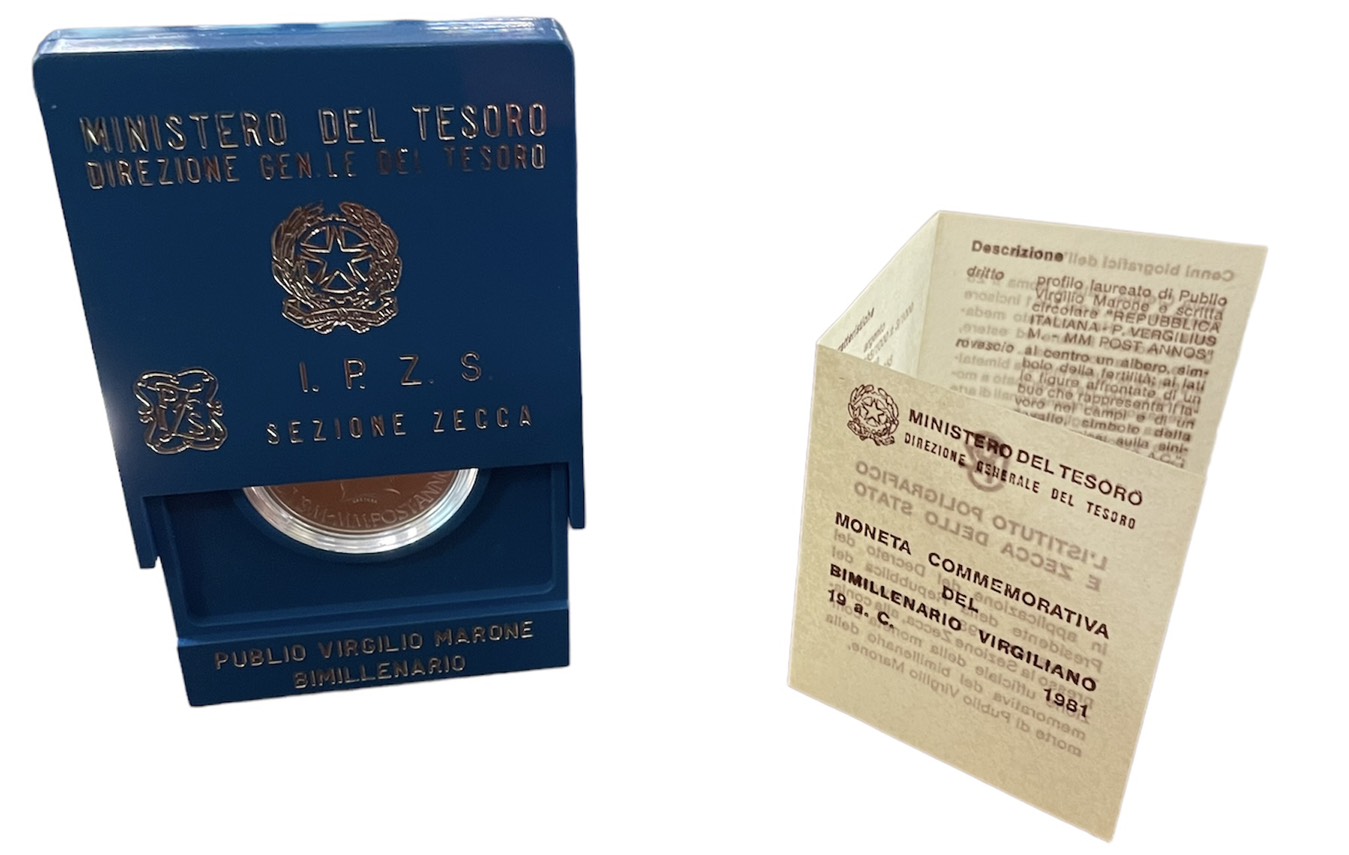 Италия 500 лир 1981 R, 2000 лет со дня смерти Вергилия, в оригинальной коробке KM 110 серебро 3-4-11-18