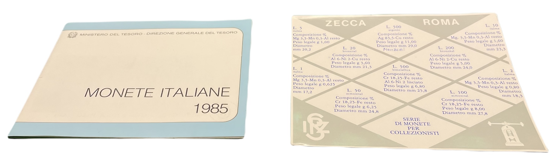 Италия госнабор из 10 монет 1985 200 лет со дня рождения Алессандро Мадзони KM MS 14 серебро UNC 7-5-1-1