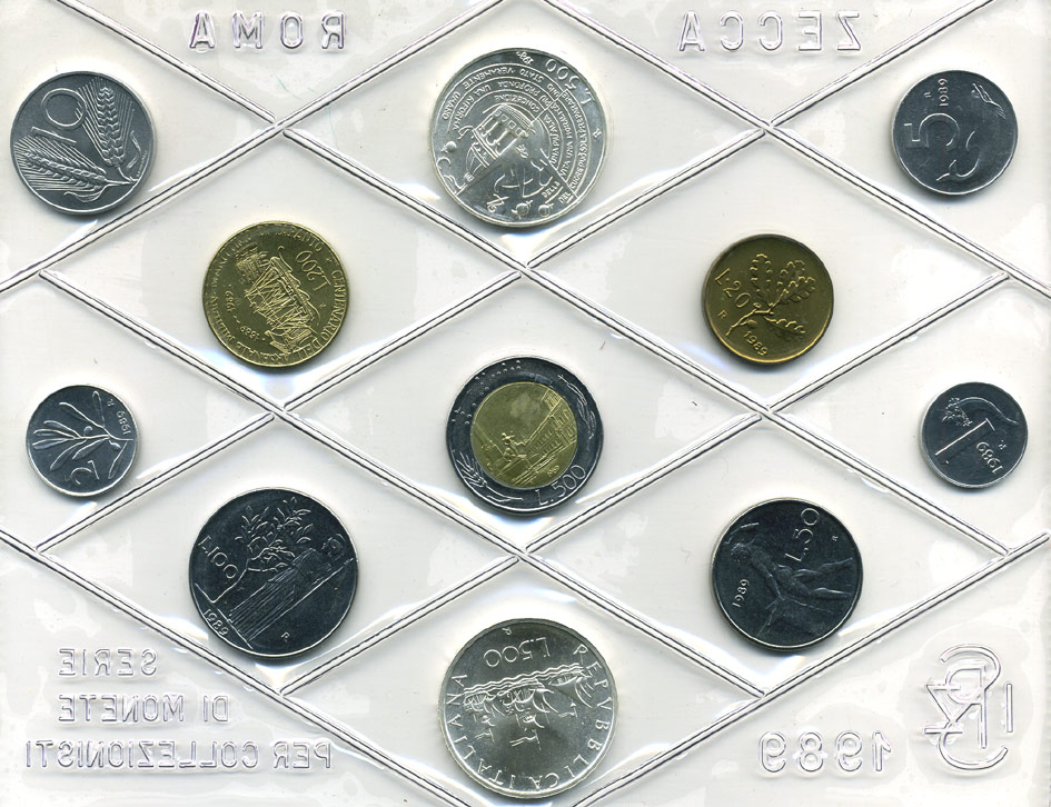 Италия госнабор из 11 монет 1989 350 лет со дня смерти Томмазо Кампанелла KM MS 22 серебро UNC 7-5-1-5