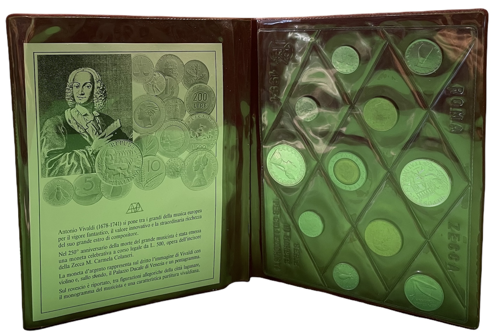 Италия госнабор из 11 монет 1991 250 лет со дня смерти Антонио Вивальди KM MS 26 серебро UNC 7-5-1-7