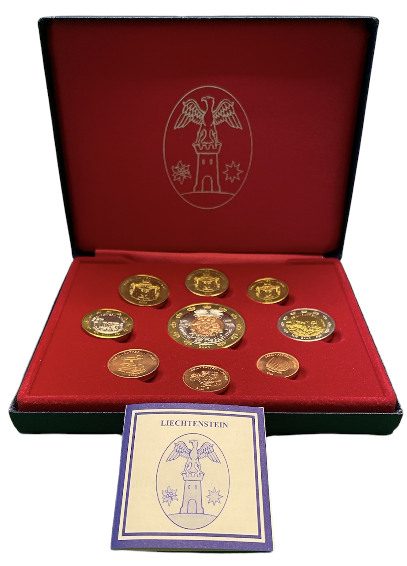 Лихтенштейн евронабор из 9 монет (с 5 евро) 2004 пробники, PROBA, в оригинальной коробке, с сертификатом PROOF 4-3-4-10