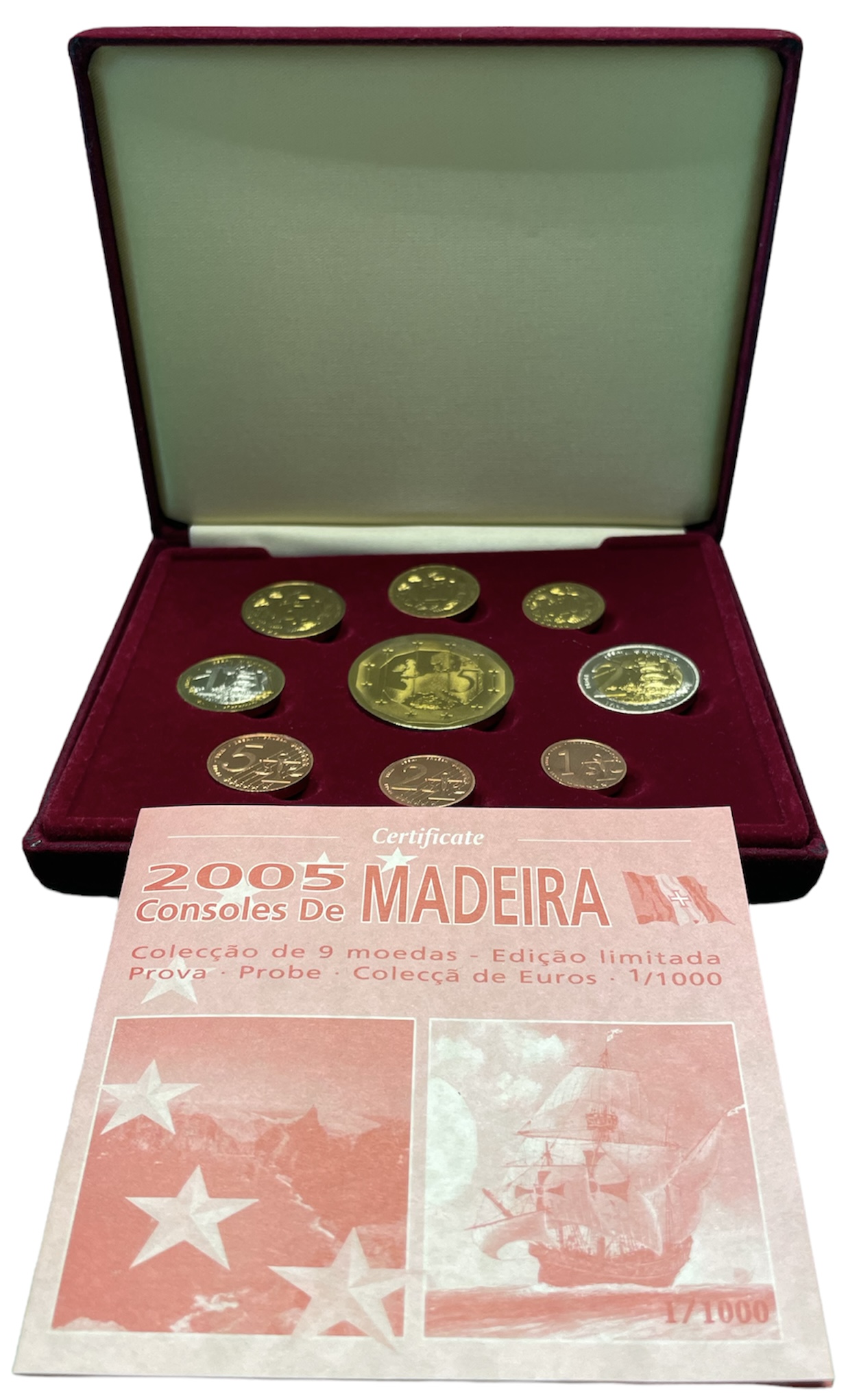 Мадейра евронабор из 9 монет (с 5 евро) 2005 пробники, PROBA, в оригинальной коробке, с сертификатом PROOF 4-3-4-09