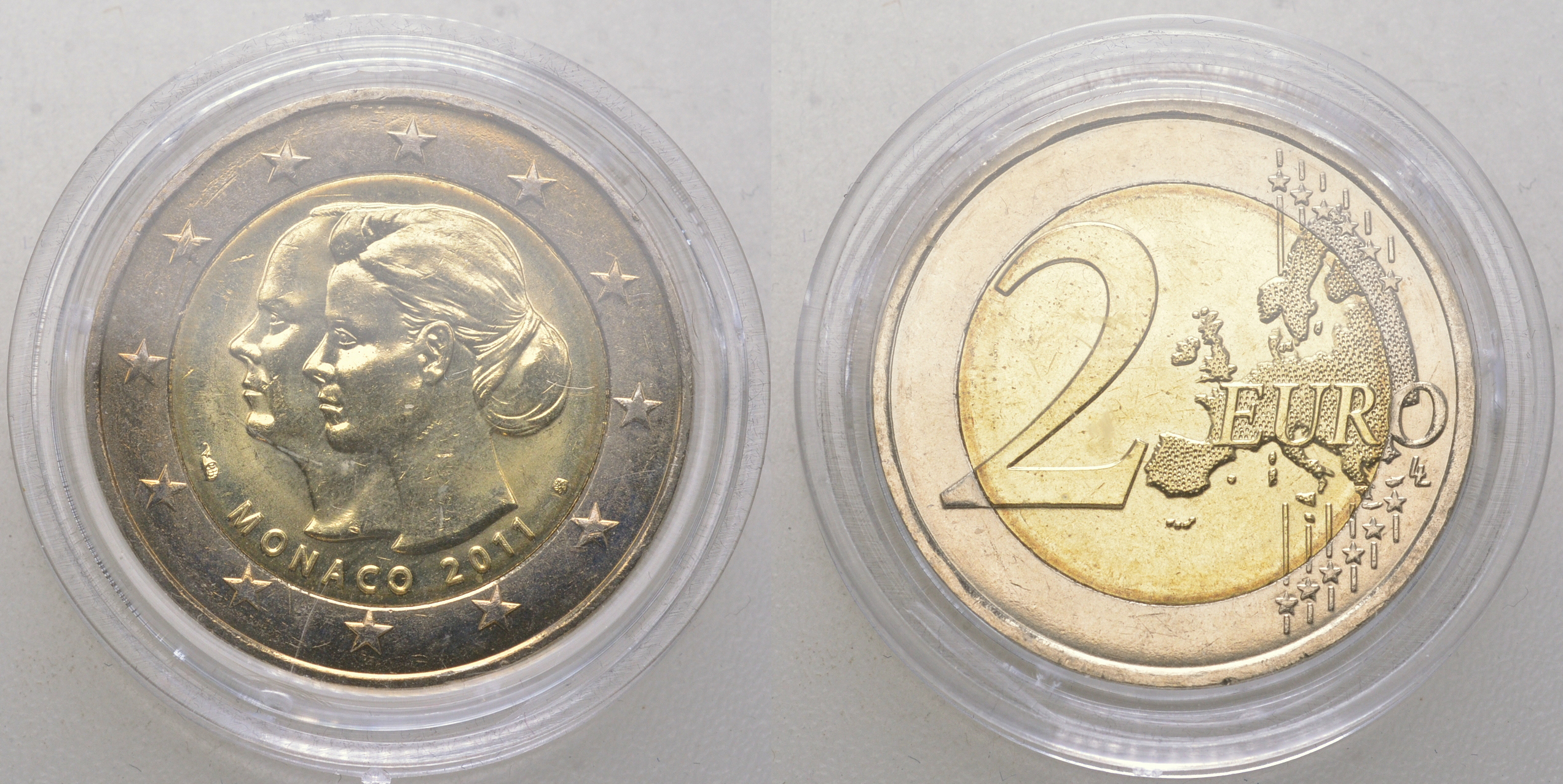 Монако 2 евро 2011 свадьба князя Монако Альберта II и Шарлин Уиттсток KM 196 биметалл UNC 3-4-11-15