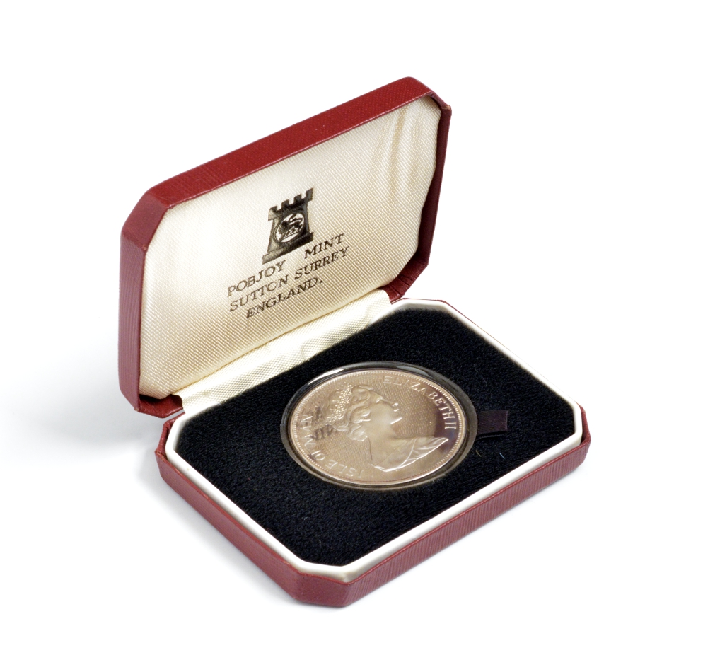 Остров Мэн 1 крона 1977 серебряный юбилей правления королевы Елизаветы II, три короны, в оригинальной коробке KM 41а серебро PROOF 7-4-1-43