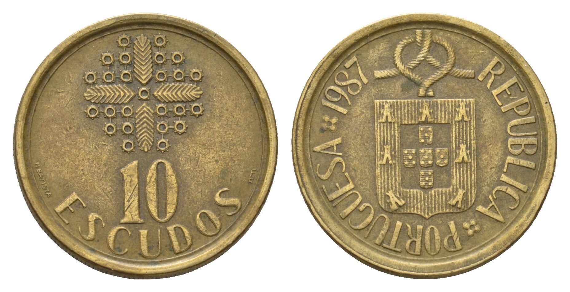 Португалия 10 эскудо 1987 KM 633 никель латунь 202-133
