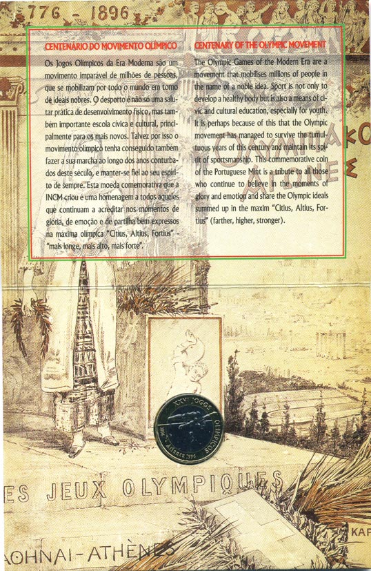 Португалия набор из 8 монет 1996 Олимпийские игры 1996 года в Атланте, в картонном буклете, тираж 20000 экз. KM MS24 (KM 631-634, 636, 645.1, 655, 687) BUNC 5-4-3-09