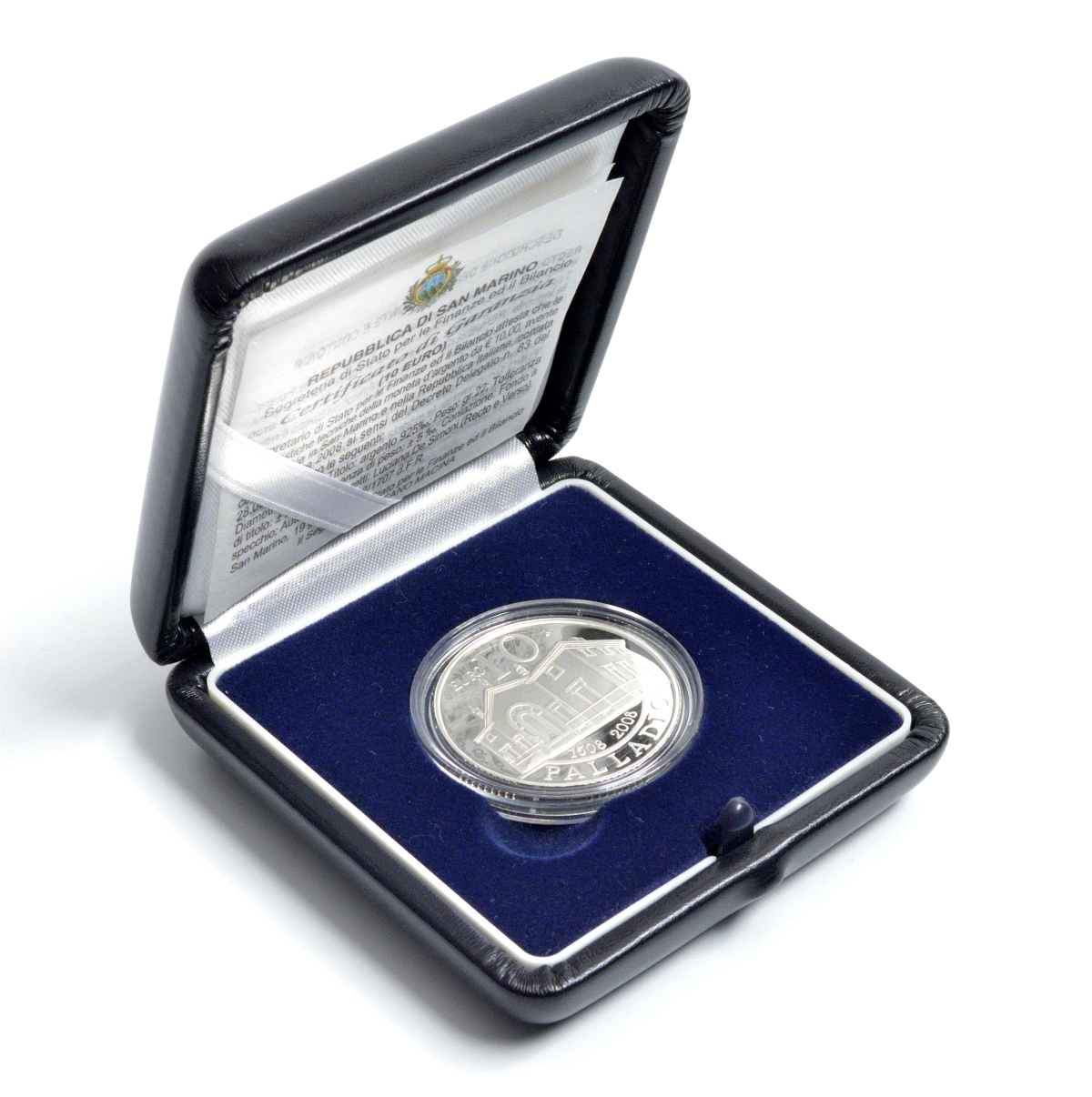 Сан-Марино 10 евро 2008 500 лет Андреа Палладио, в оригинальной коробке, сертификат KM 514 серебро PROOF 2-4-2-13