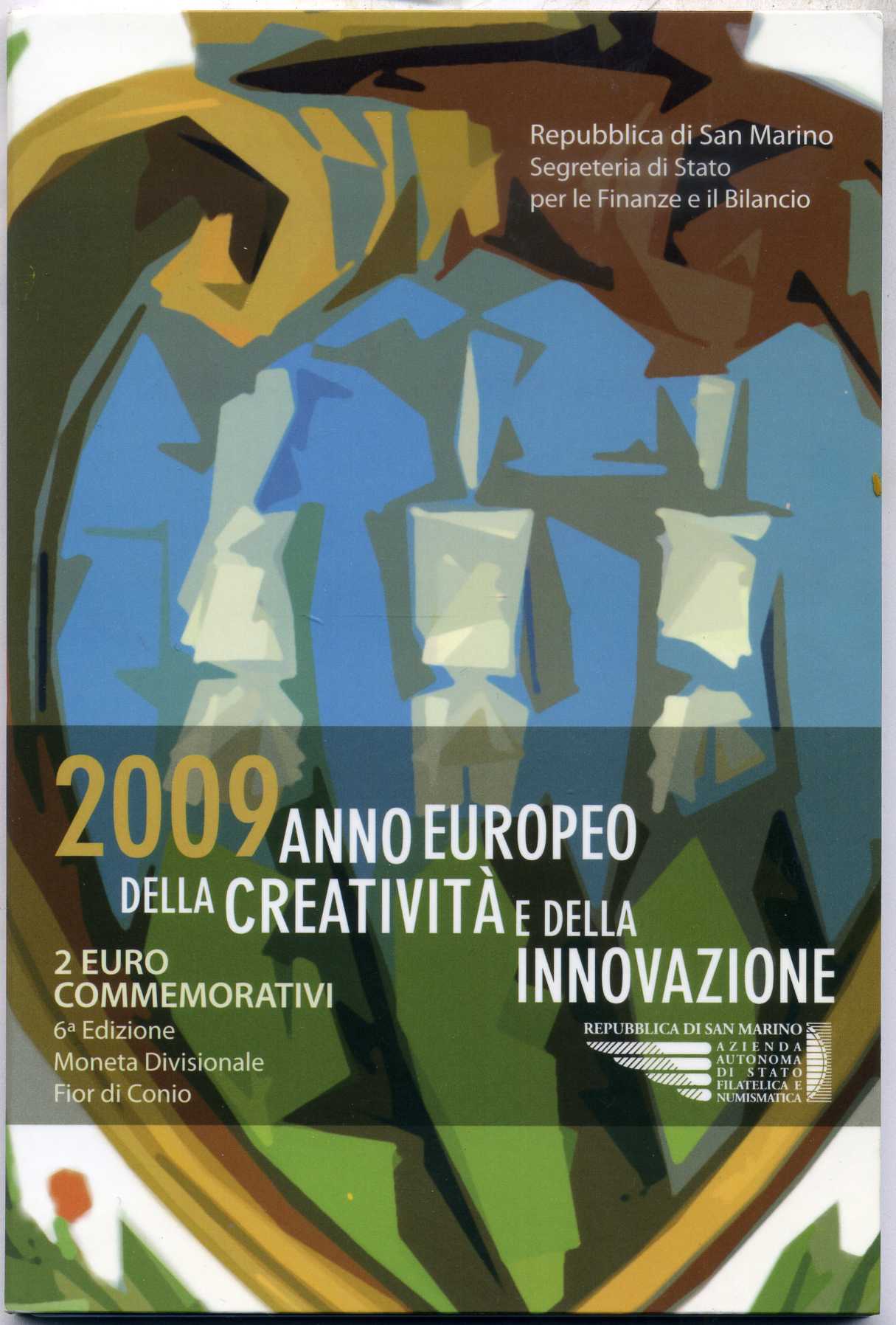 Сан-Марино 2 евро 2009 креатив и инновации, в оригинальном буклете биметалл UNC 6-5-2-15