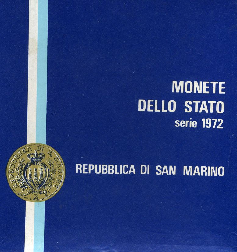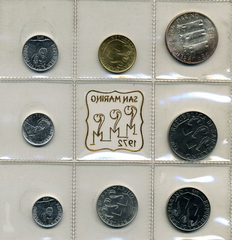 Сан-Марино годовой набор из 8 монет 1972 1, 2, 5, 10, 20, 50, 100 и 500 лир мать поднимает ребенка в воздух KM 14-21, в оригинальной пластиковой запайке серебро KM MS1 серебро UNC 7-5-1-8