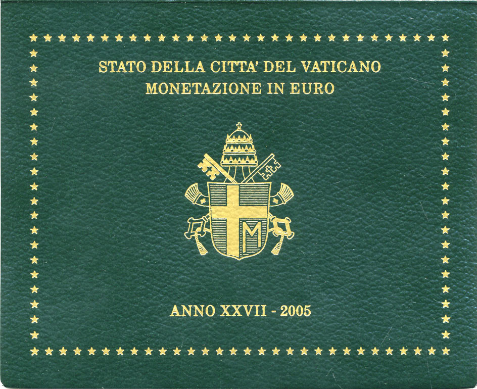 Ватикан евронабор из 8 монет 2005 Папа Иоанн Павел II, в оригинальном буклете KM MS 111 биметалл UNC 5-6-2-68